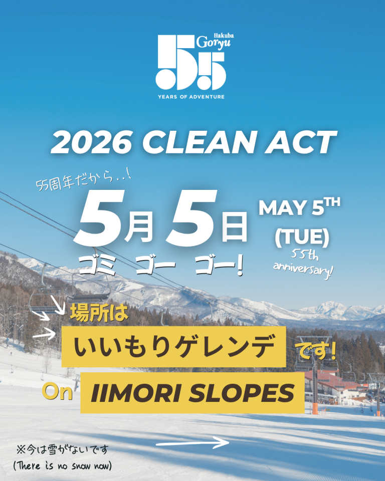 Let’s work together to help protect the beautiful nature of Hakuba. We will clean the slopes where everyone enjoyed skiing and snowboarding. Gomi gogo!