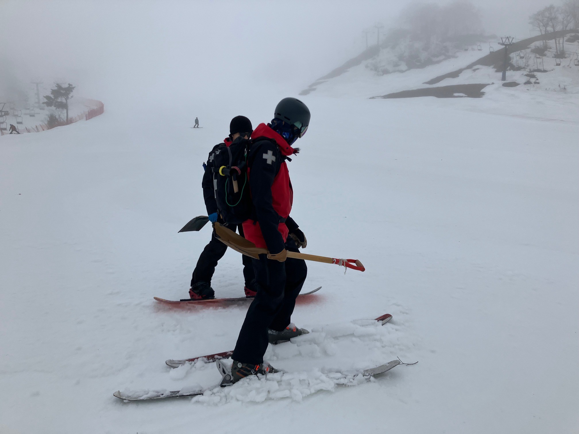 春の水分を含んだ雪はとにかく重く、普通にやっていては体力が持ちません。
