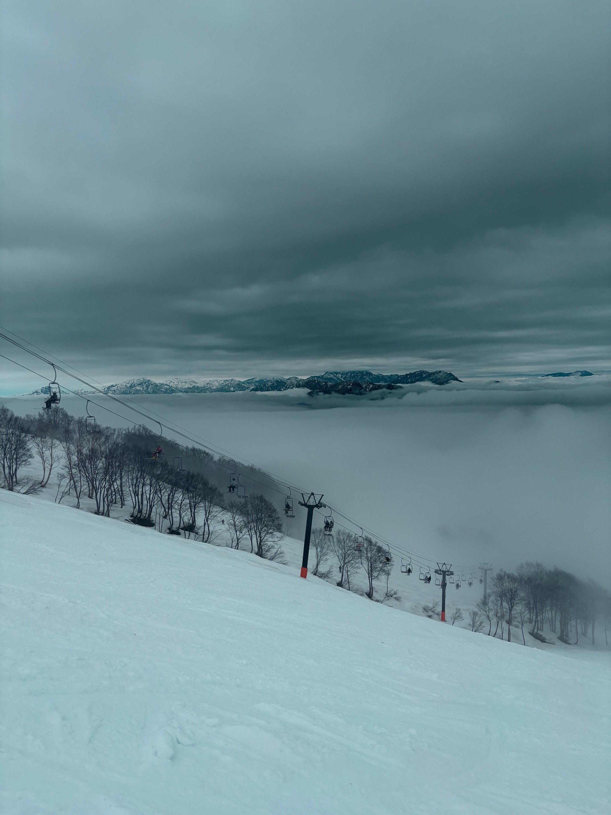 ゴンドラで白いガスを突き抜けた瞬間、眼下に広がる一面の雲。この幻想的な景色を見られるのは、山で働く者の特権だなとしみじみ感じます。