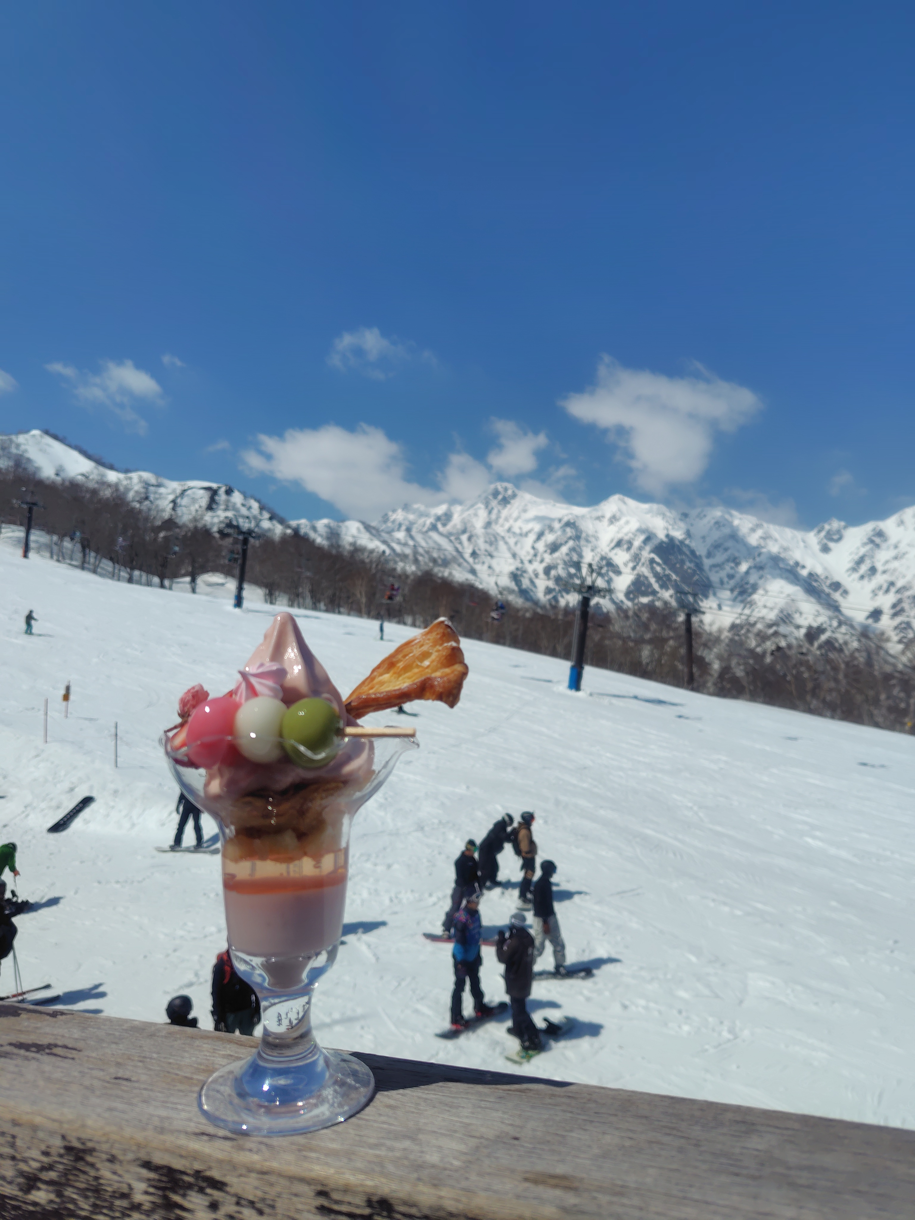 春スキー、スノーボードで汗をかいた後の冷たいデザートは身に染みますよ!ぜひご賞味ください。