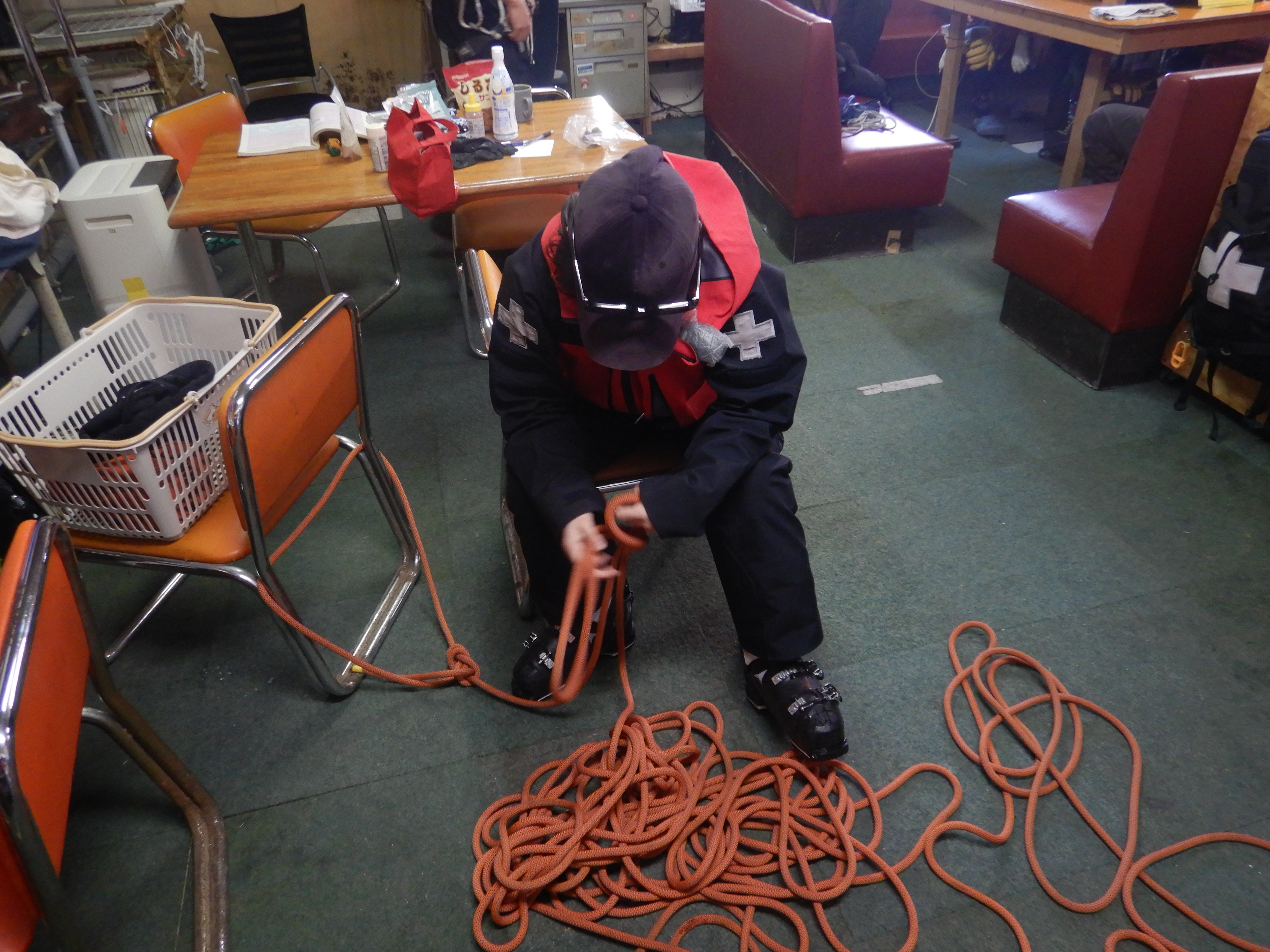 全リフトが運休した後は普段中々できないトレーニングをします、本日は滑落者の引き上げ時のシステムの復習を行いました。こういったロープを使用する場面では、ちょっとしたミスが事故になってしまうのでとにかく反復練習あるのみです。一日でも早くちゃんと習得してもらい、現場で使用できるようになってもらいたいですね。