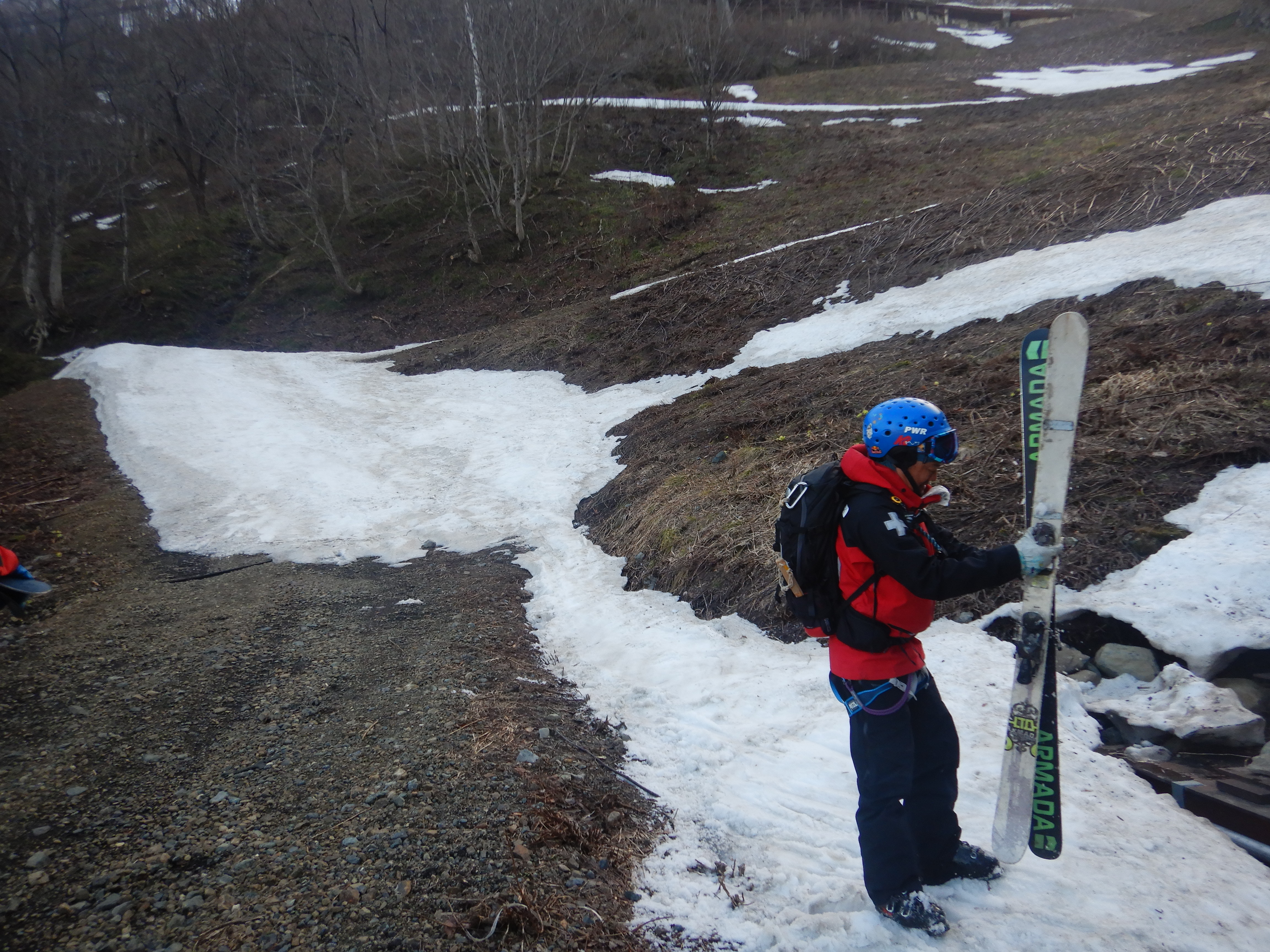 ここはウッディー出口の橋の所ですが、もう雪は有りません。とりあえずここまではなんとか滑って下りてきましたがもういけません、ここからは板を脱いだり履いたりと太腿をパンパンにしながらなんとかテレキャビンの8号柱の所まで行き、そこから迎えの車でとおみベースに戻りました。