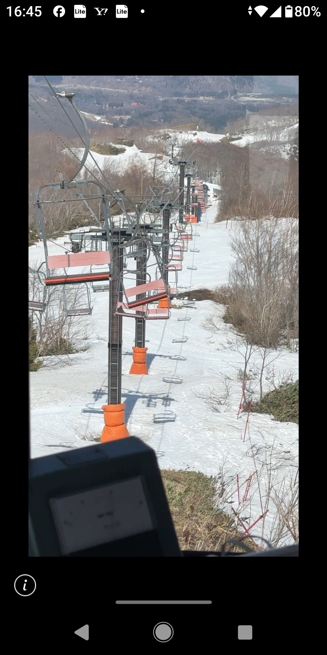 アル1の終点リフト小屋からリフト運休後に撮った写真(ぽり子隊員からいただきました)ですが、搬器が大きく揺れていますね!