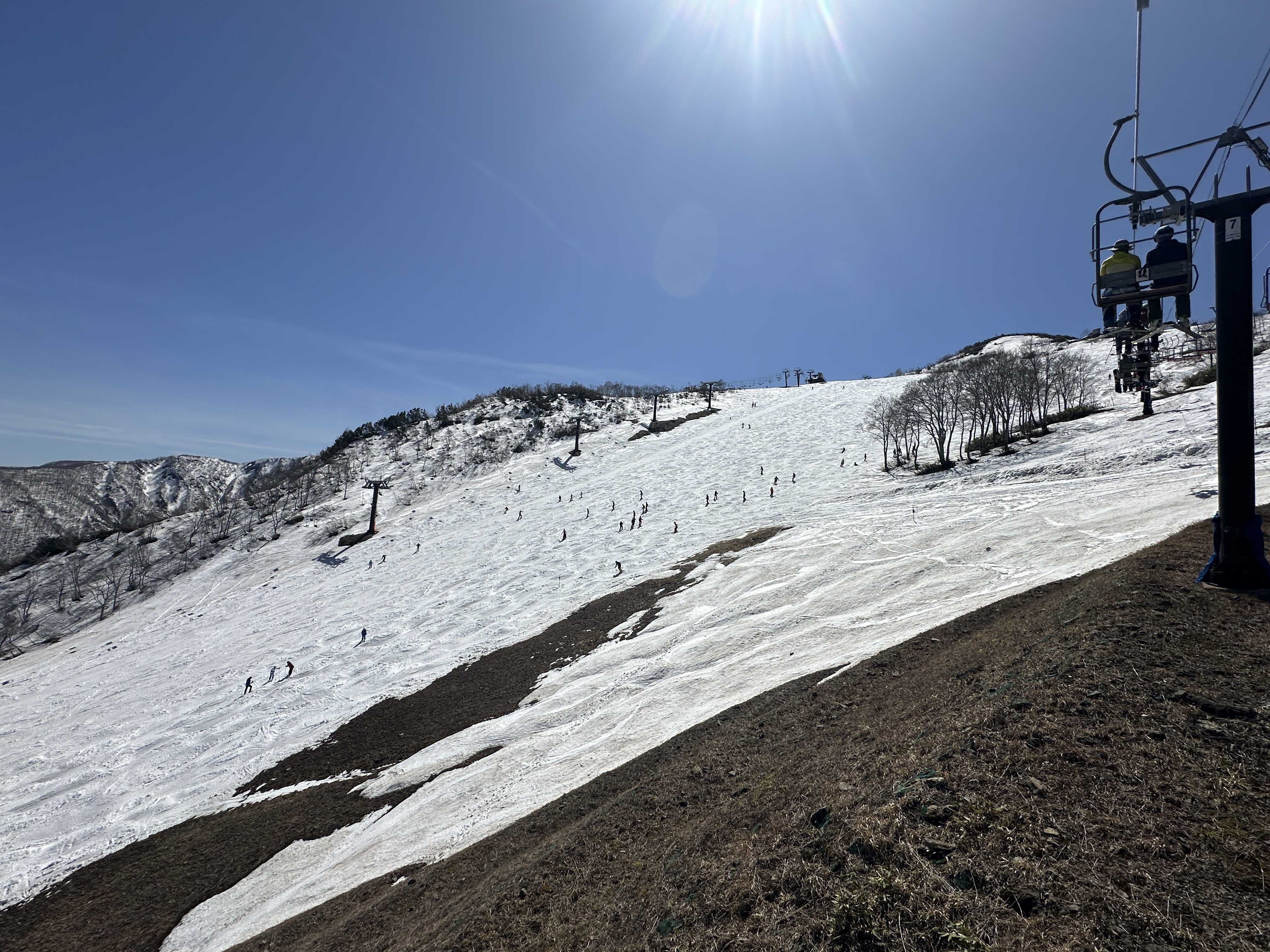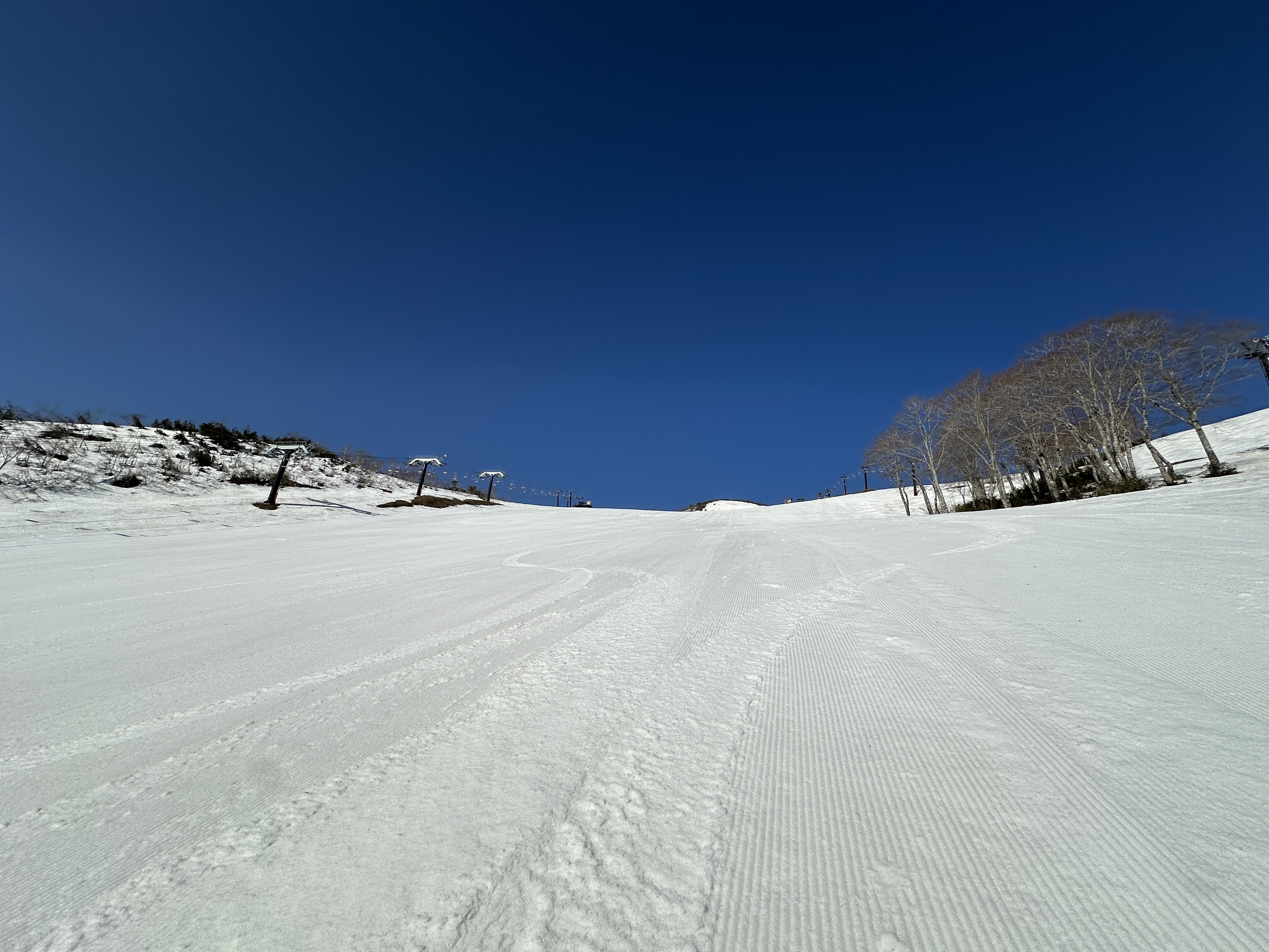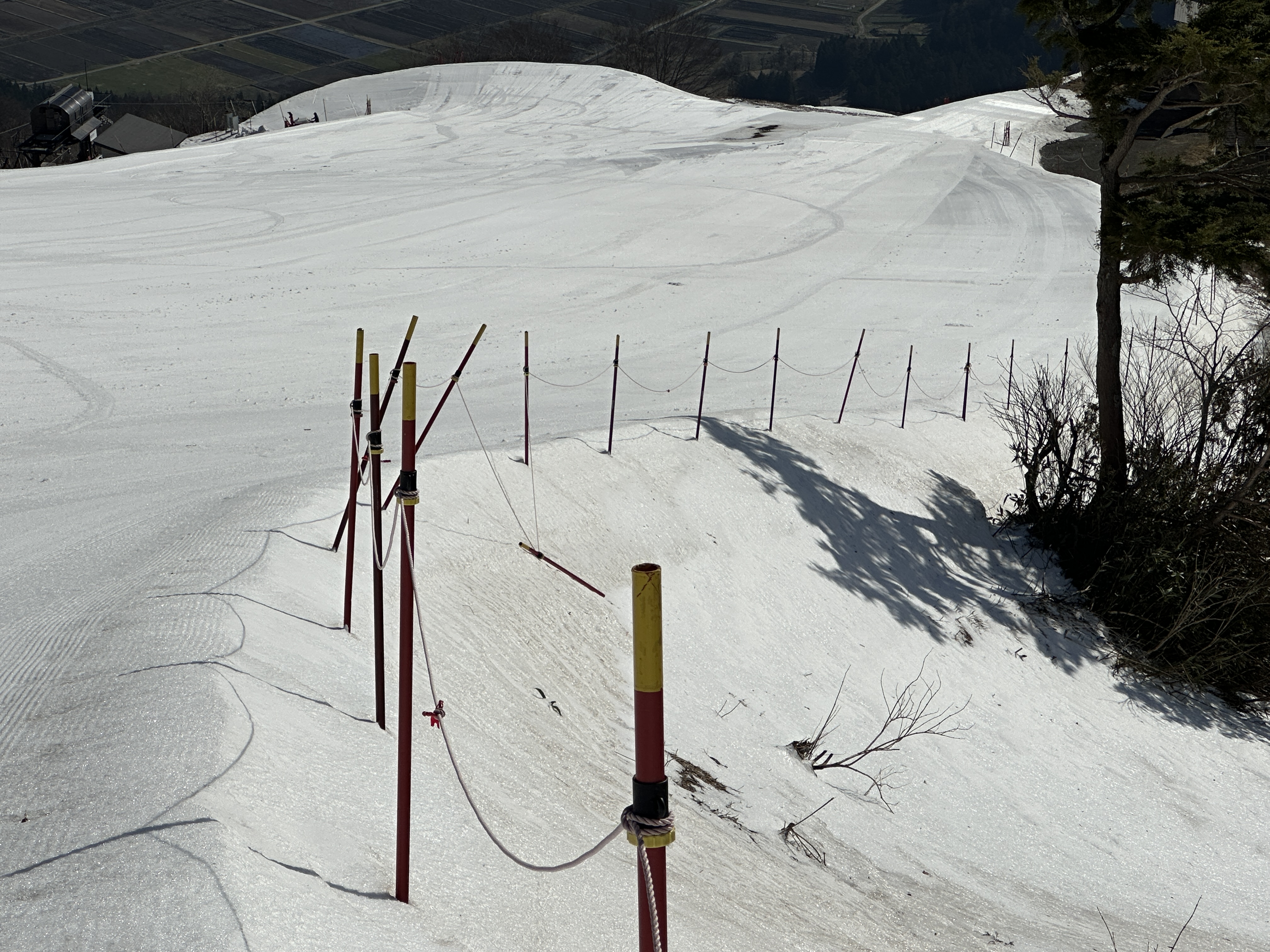 胸いっぱいに花粉入り空気を吸いこみながら、穴が無いかな、雪はどうかな、とゲレンデチェック。