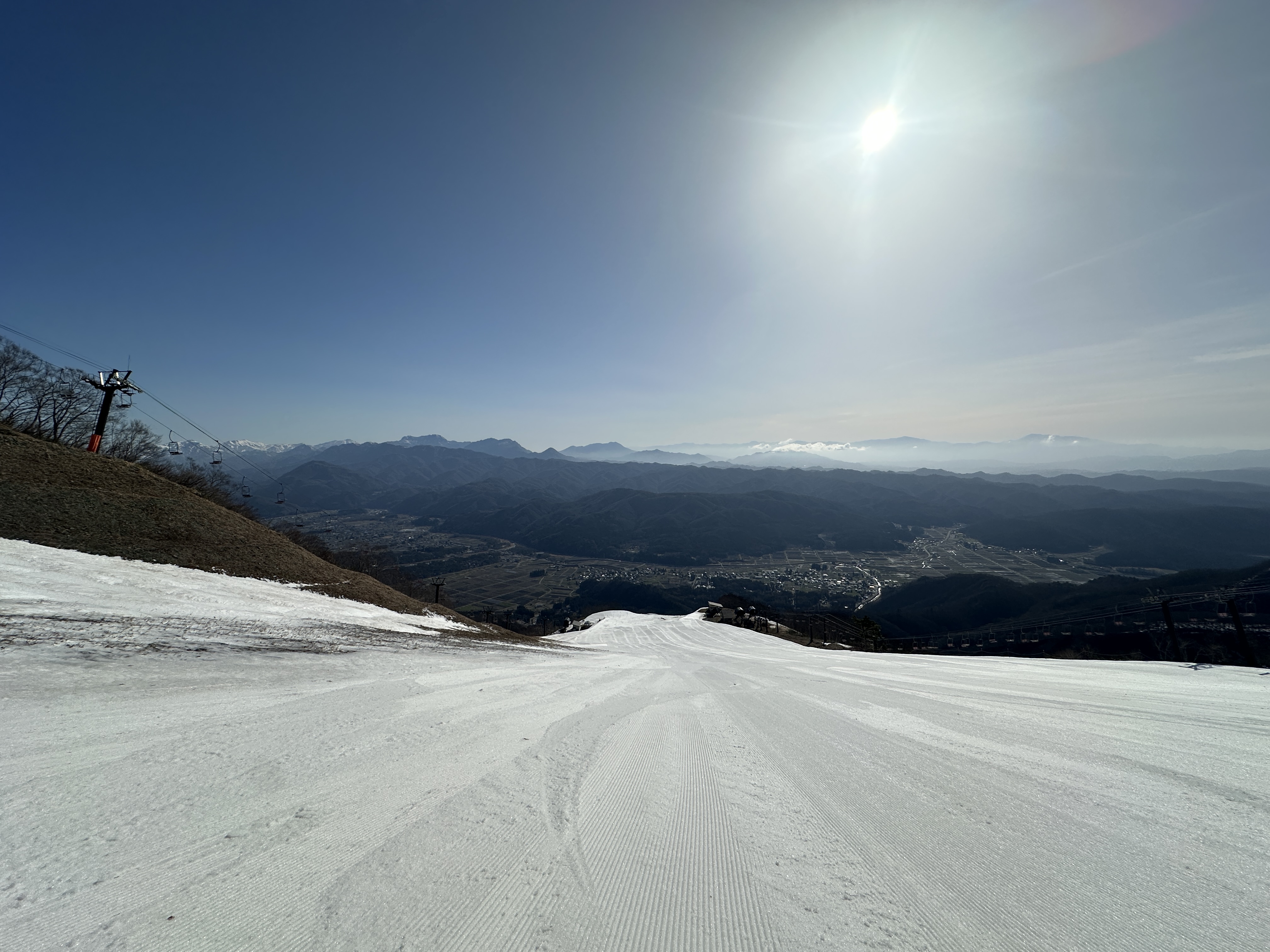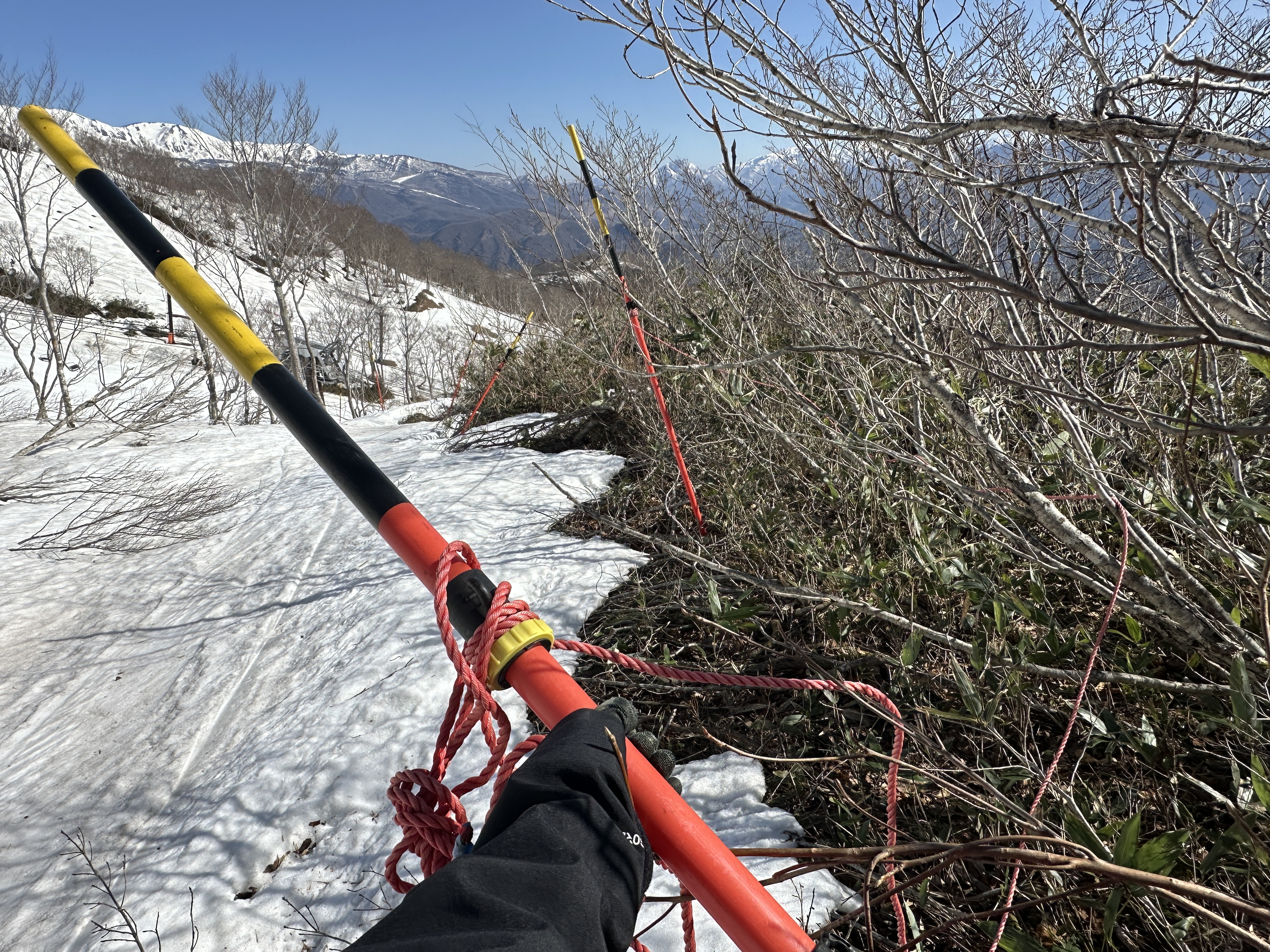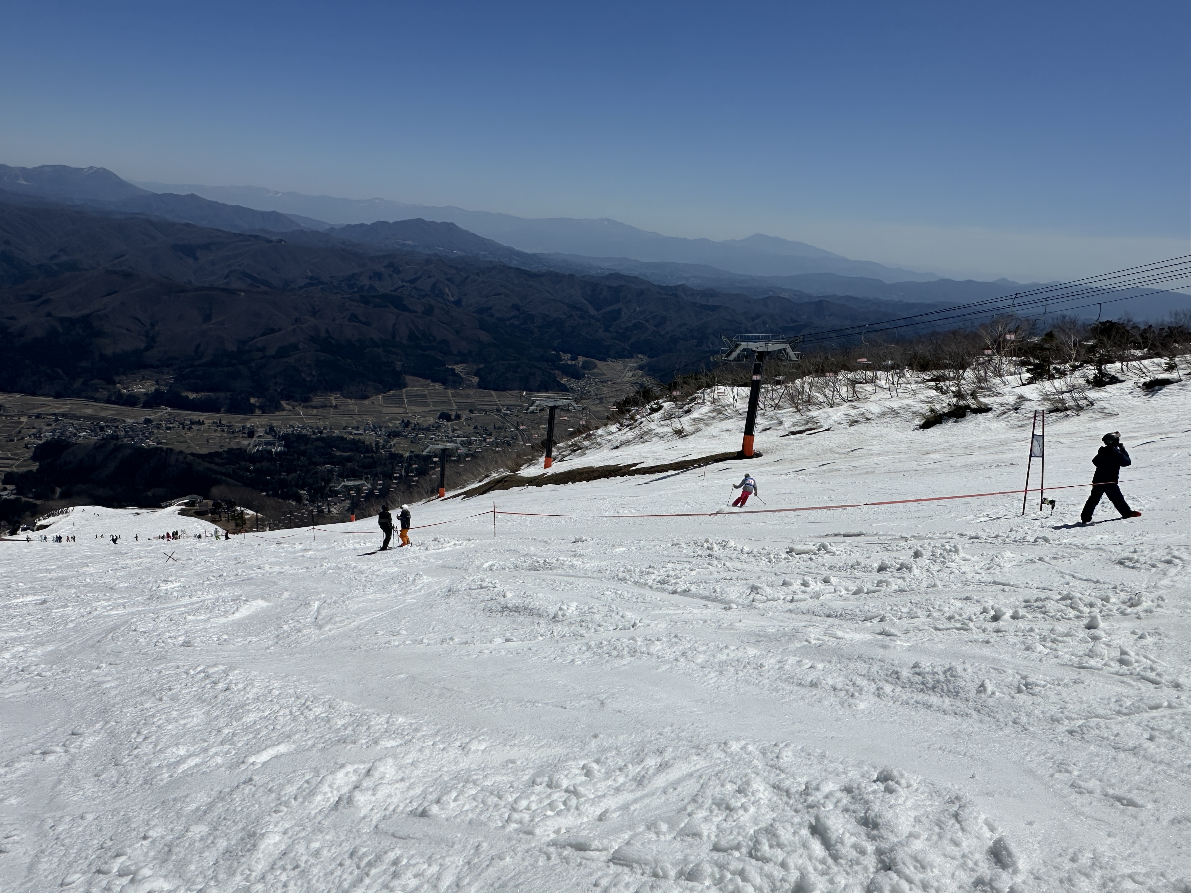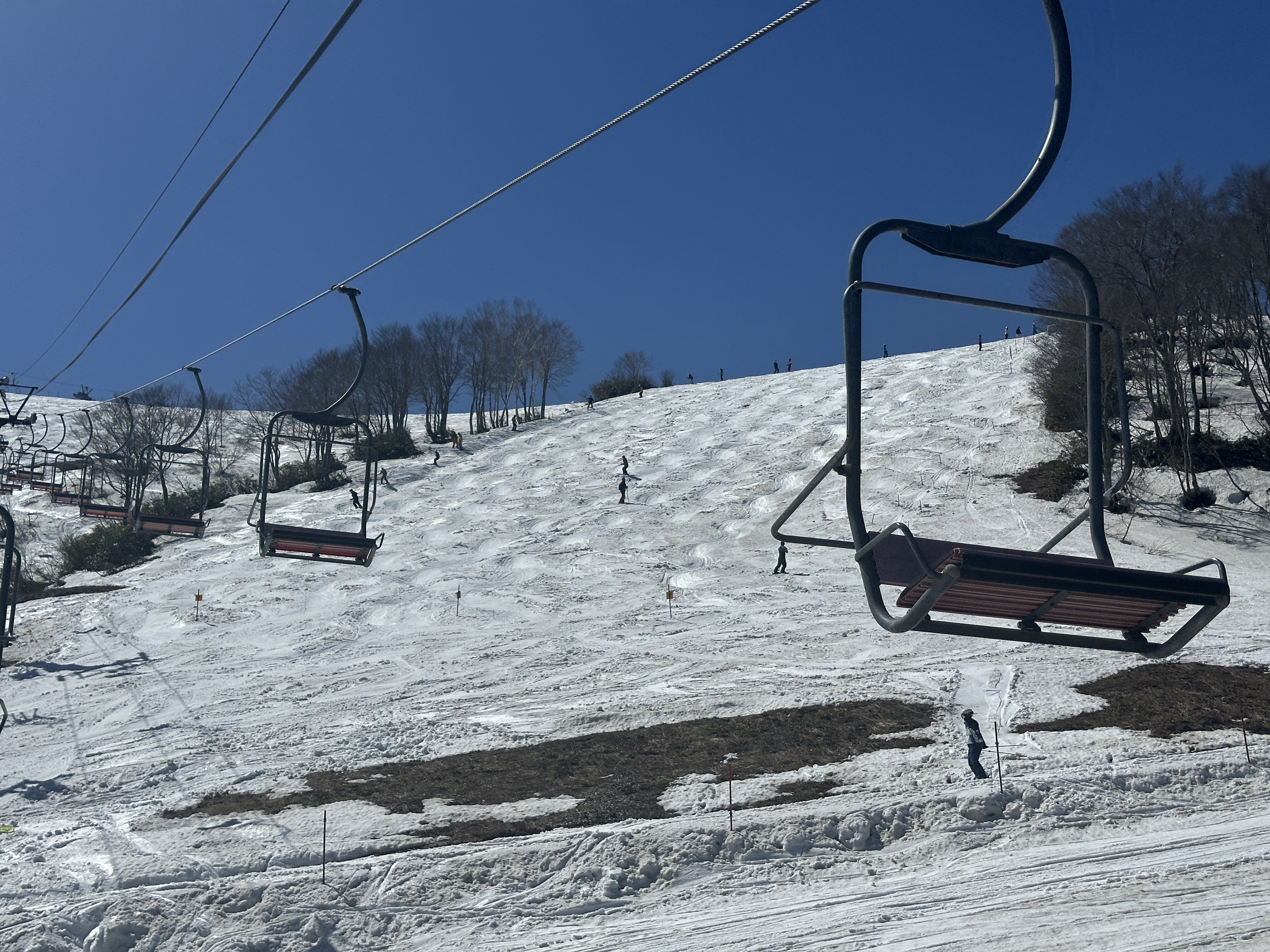 胸いっぱいに花粉入り空気を吸いこみながら、穴が無いかな、雪はどうかな、とゲレンデチェック。