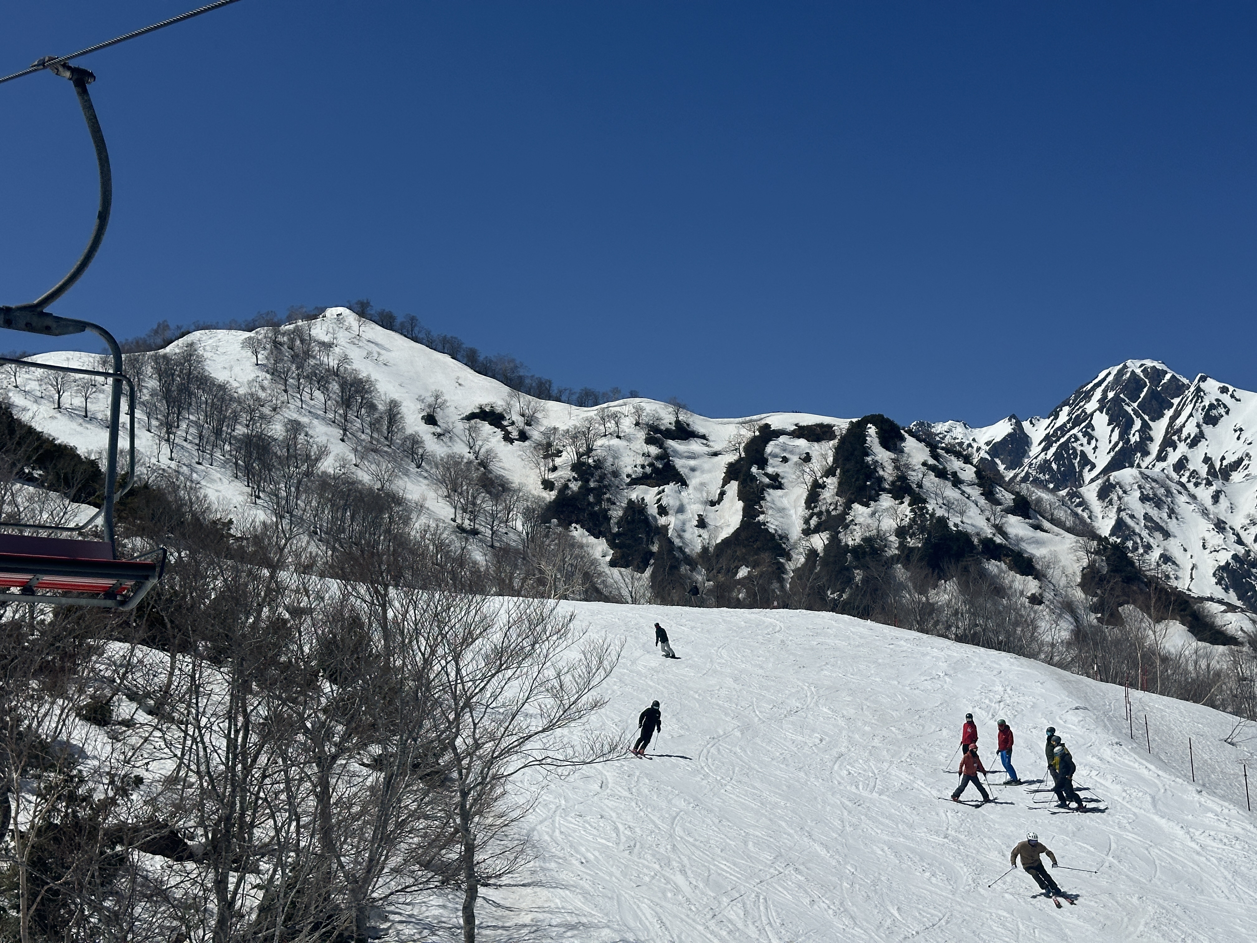 比較的まだアルプス平はキレイな白い雪が残っているので、板が泥だらけになるのが少ない気がします。