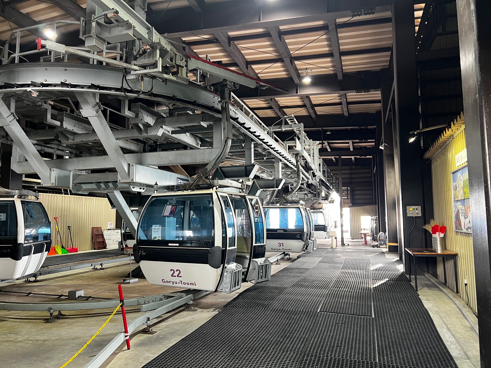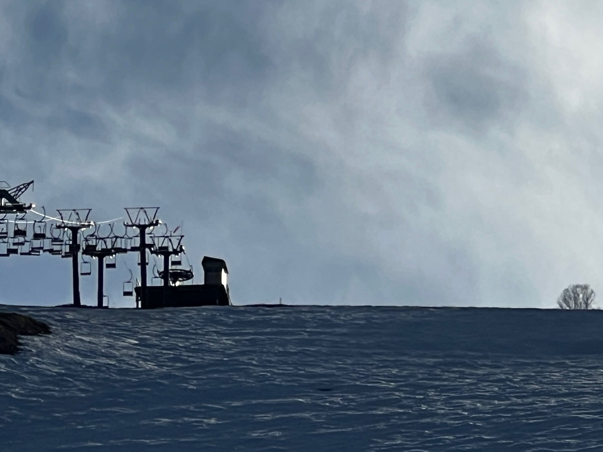 強烈な西日がアルプス第二リフトの終点小屋の側面を反射板の様に照らします。