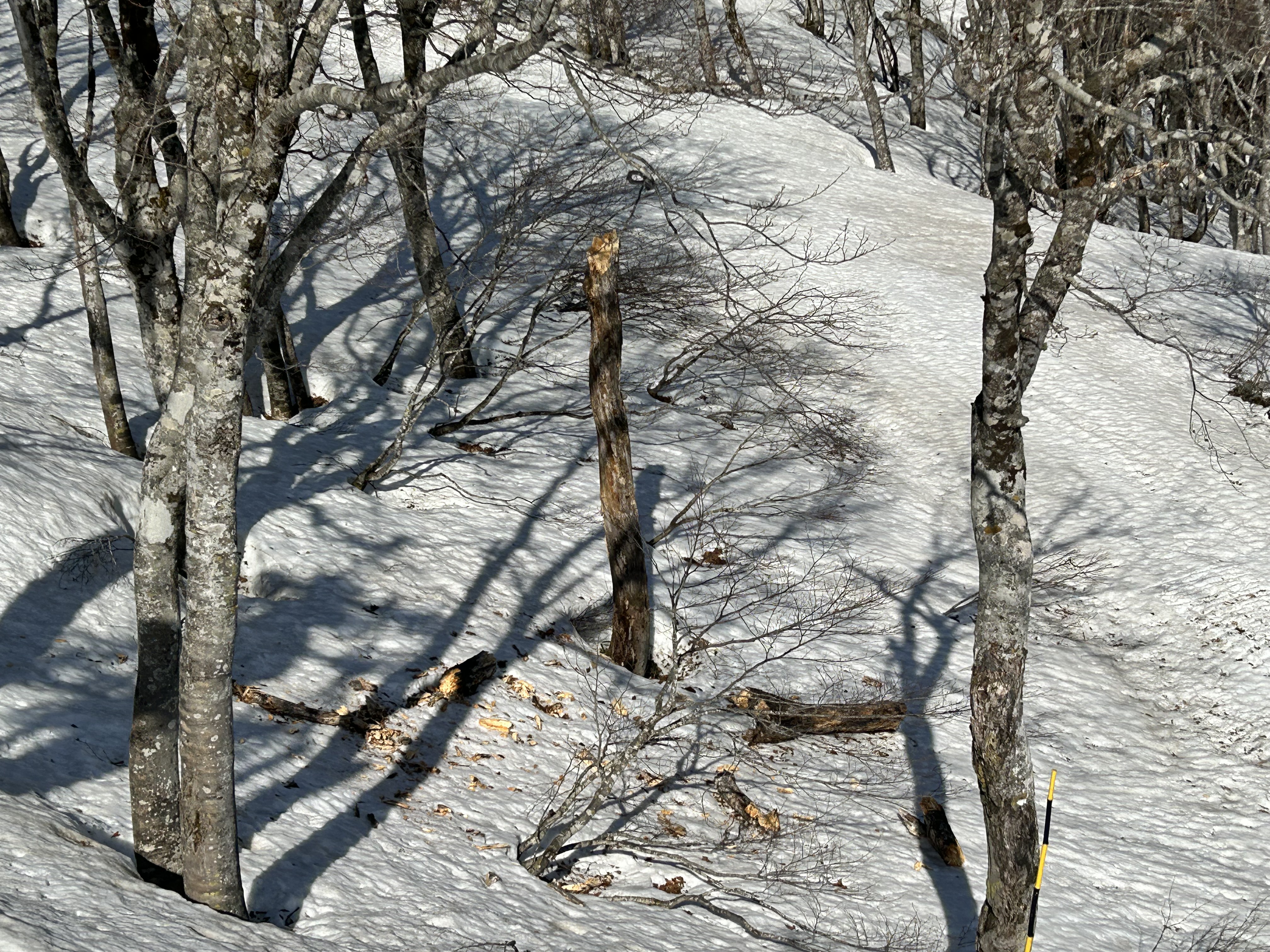 これはアルプス第一リフトの右側の林の中の写真です!滑走エリア外はこのように整備されていない状態になっており危険が多々潜んでいますので、立ち入り禁止、境界線ポールの外に出ることはないようにお願いします!!!