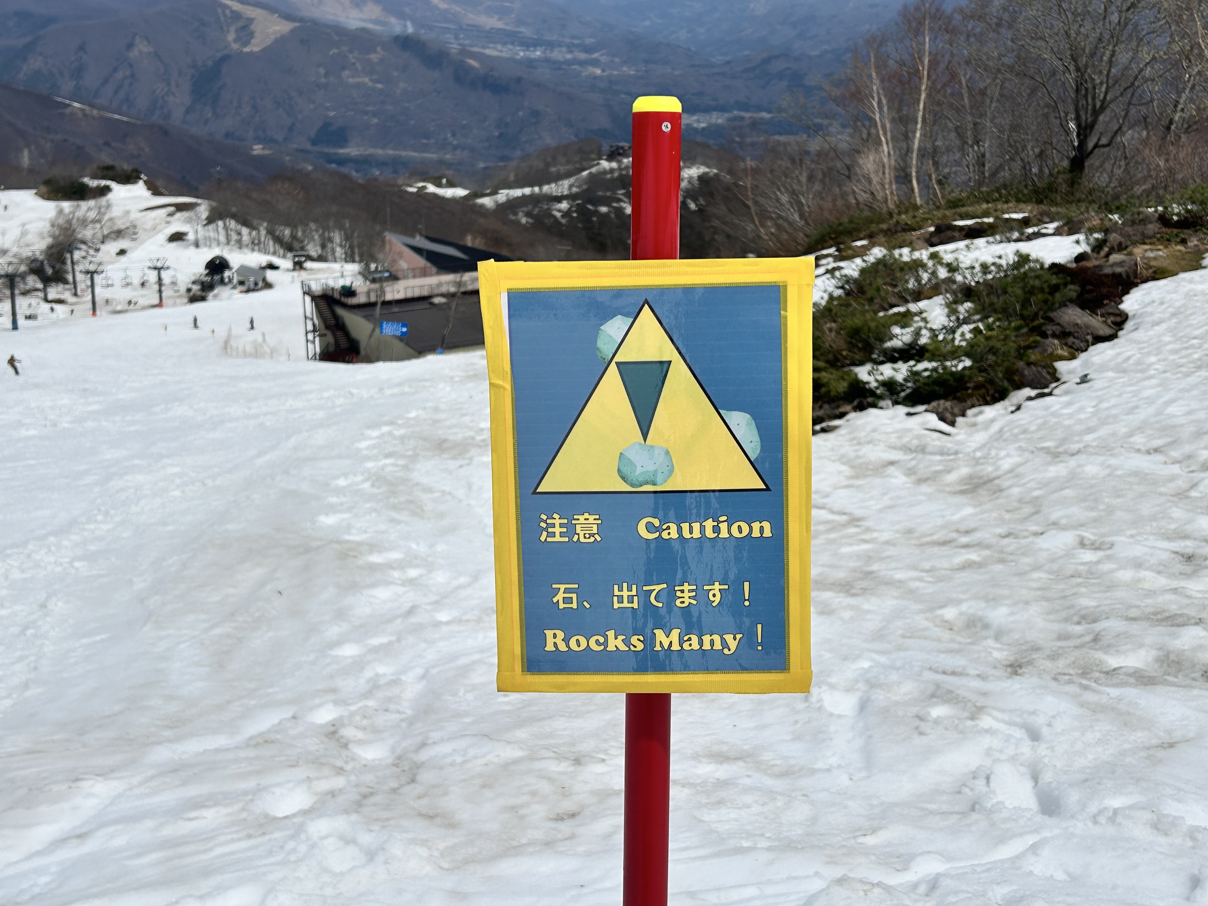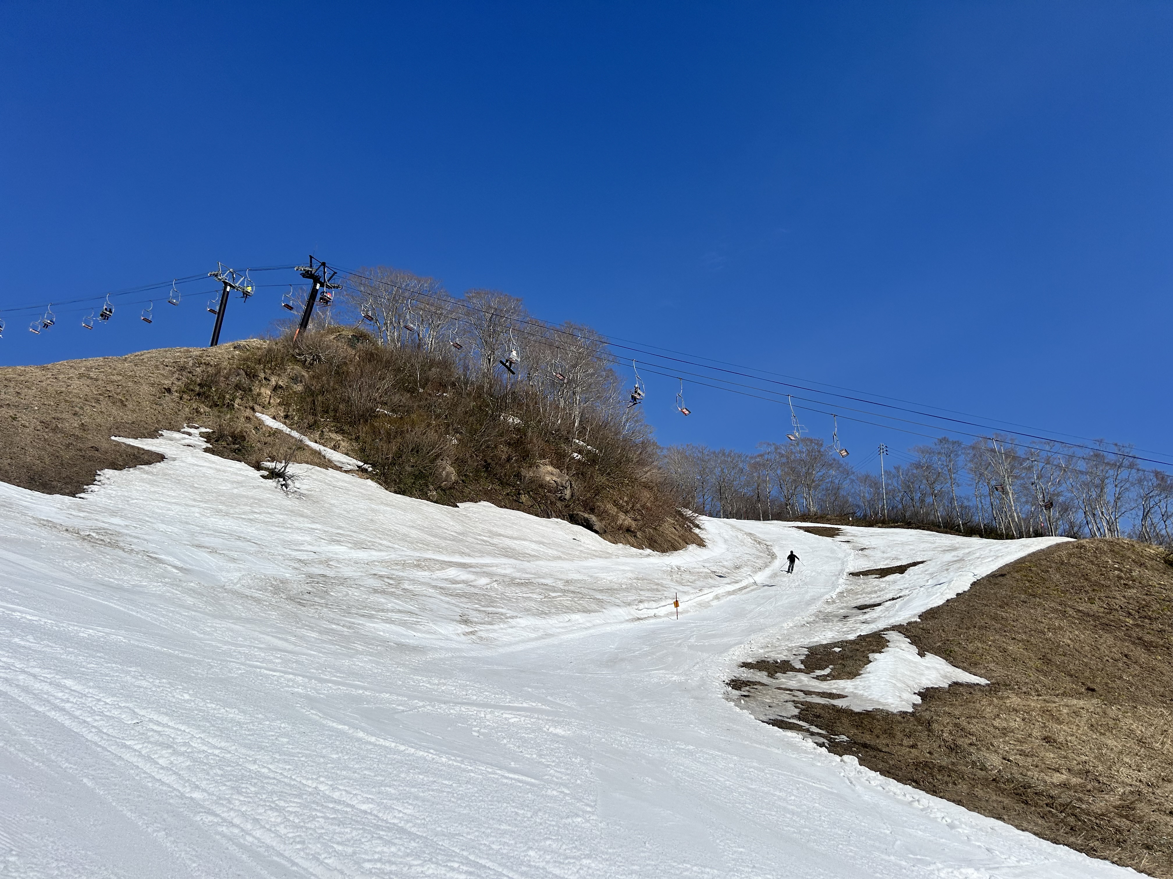 スーパーコースももう少しでつながってしまいそうな勢いで融雪が、、、雪が、雪が、、、、