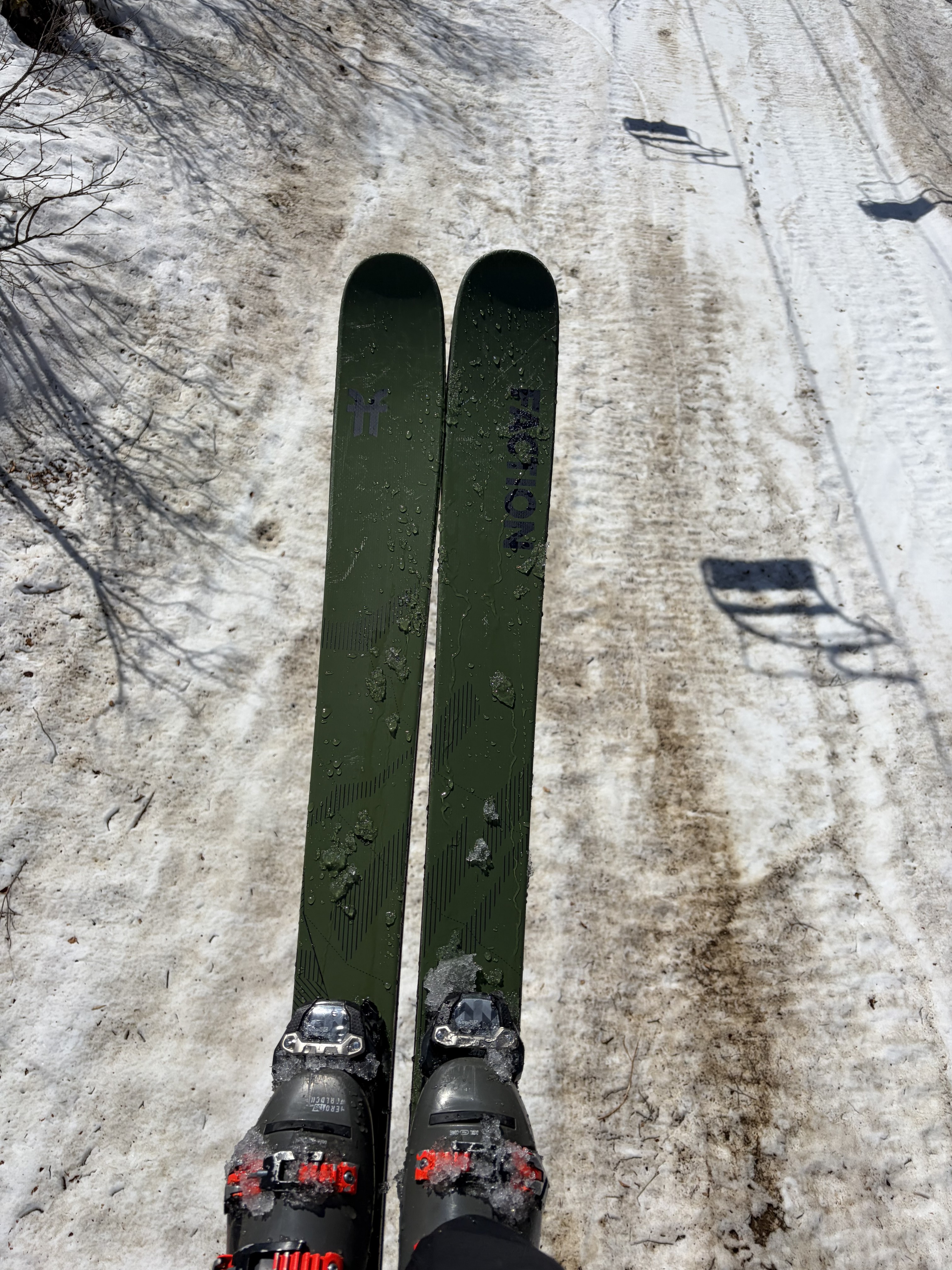 ちなみに今日はスキーが一本壊れてしまい、代わりにグリーンのパトロール用装備で滑っていました。