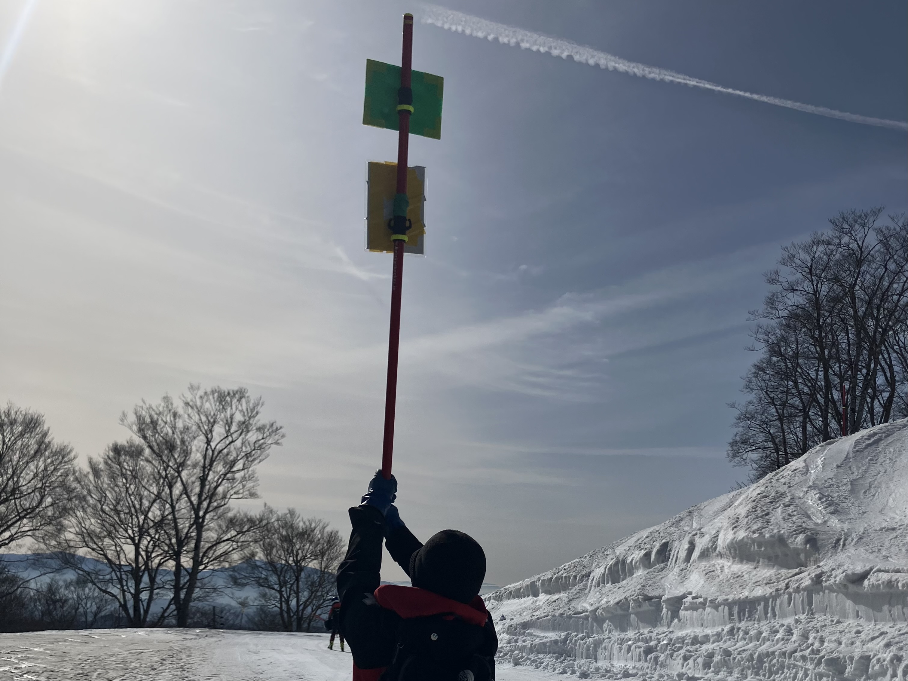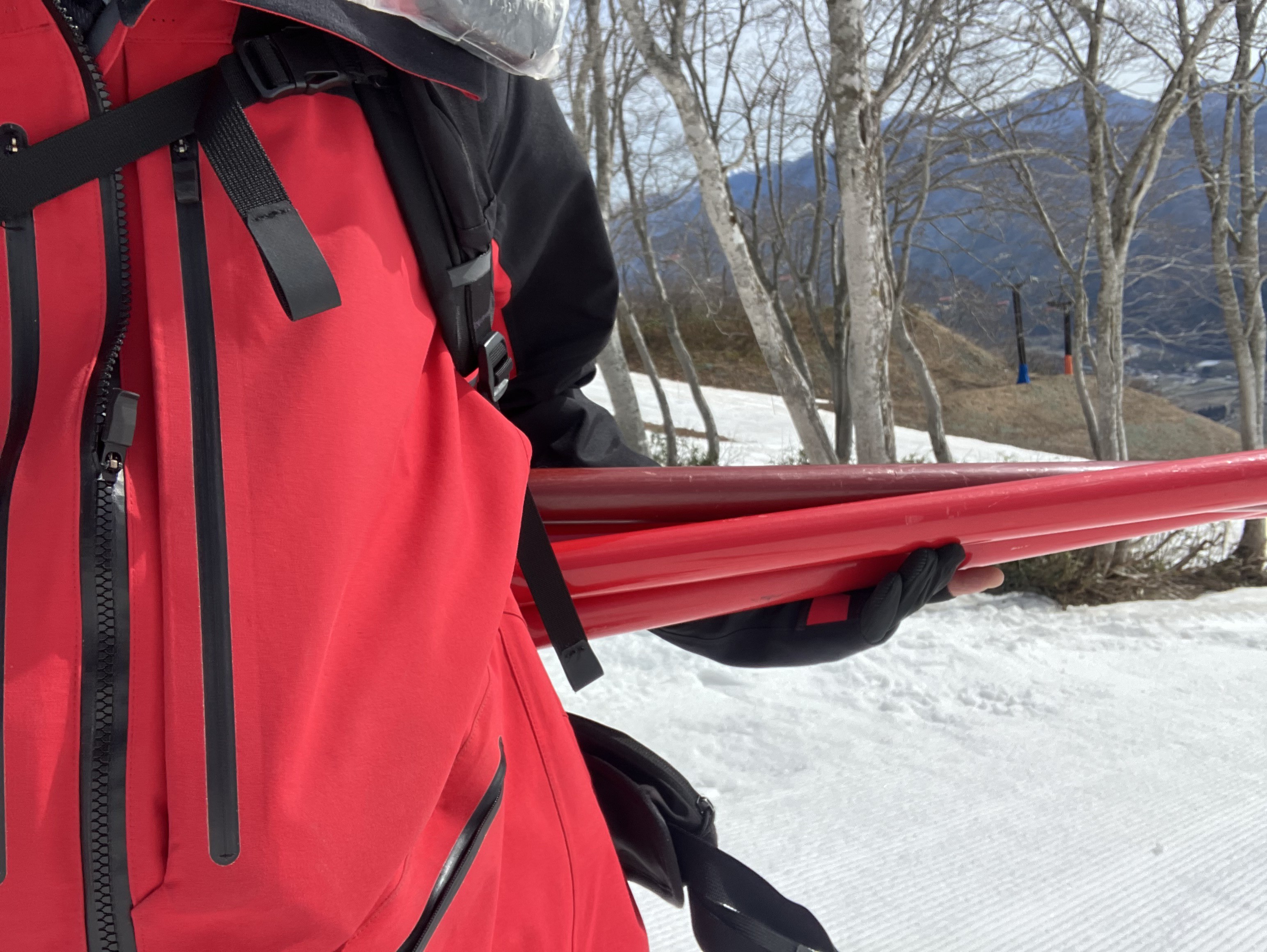 初見の冒険者(スキーヤー・スノーボーダー)の皆様がうっかり足を踏み入れないよう、我々は看板やポールを担いで巡回しています。