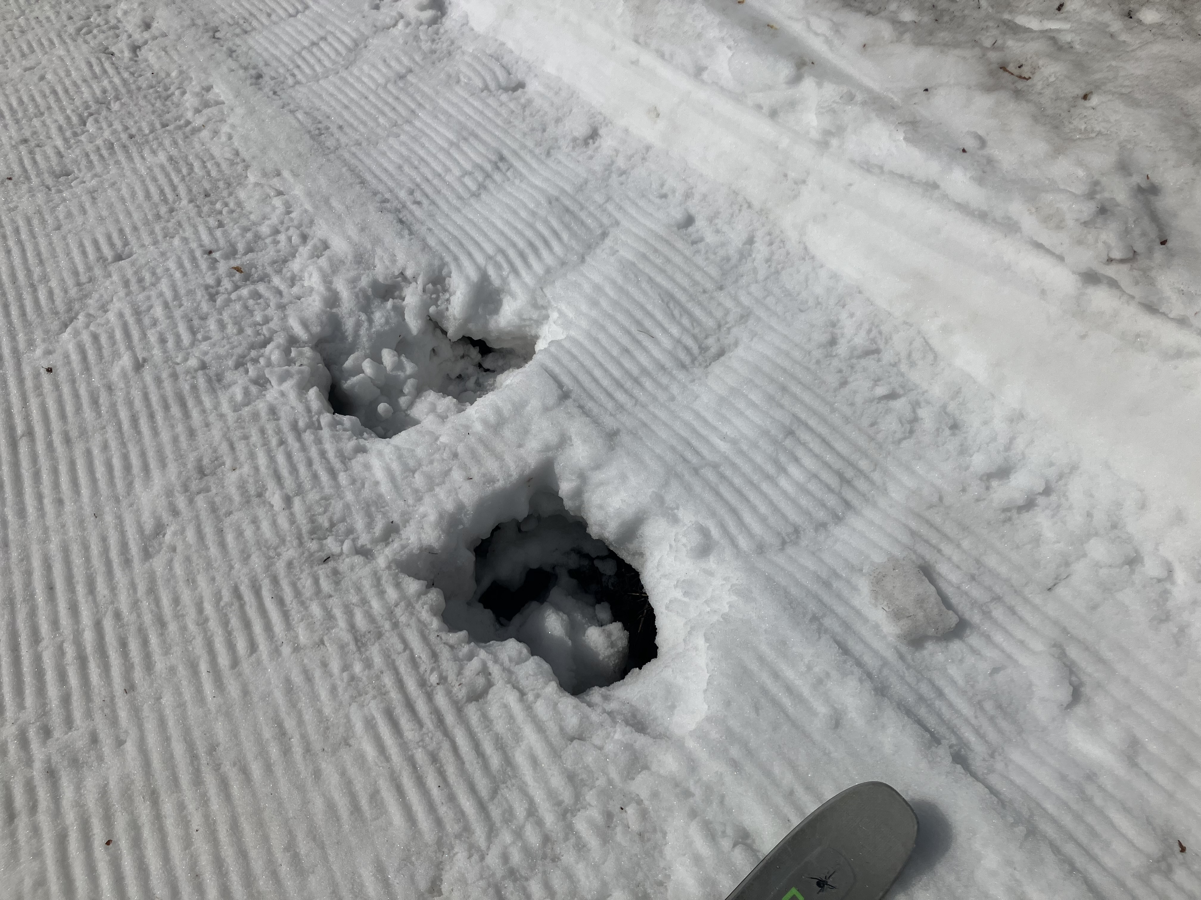 ​ゲレンデを巡回していると、あちこちに危険な「春の罠」が仕掛けられています。
