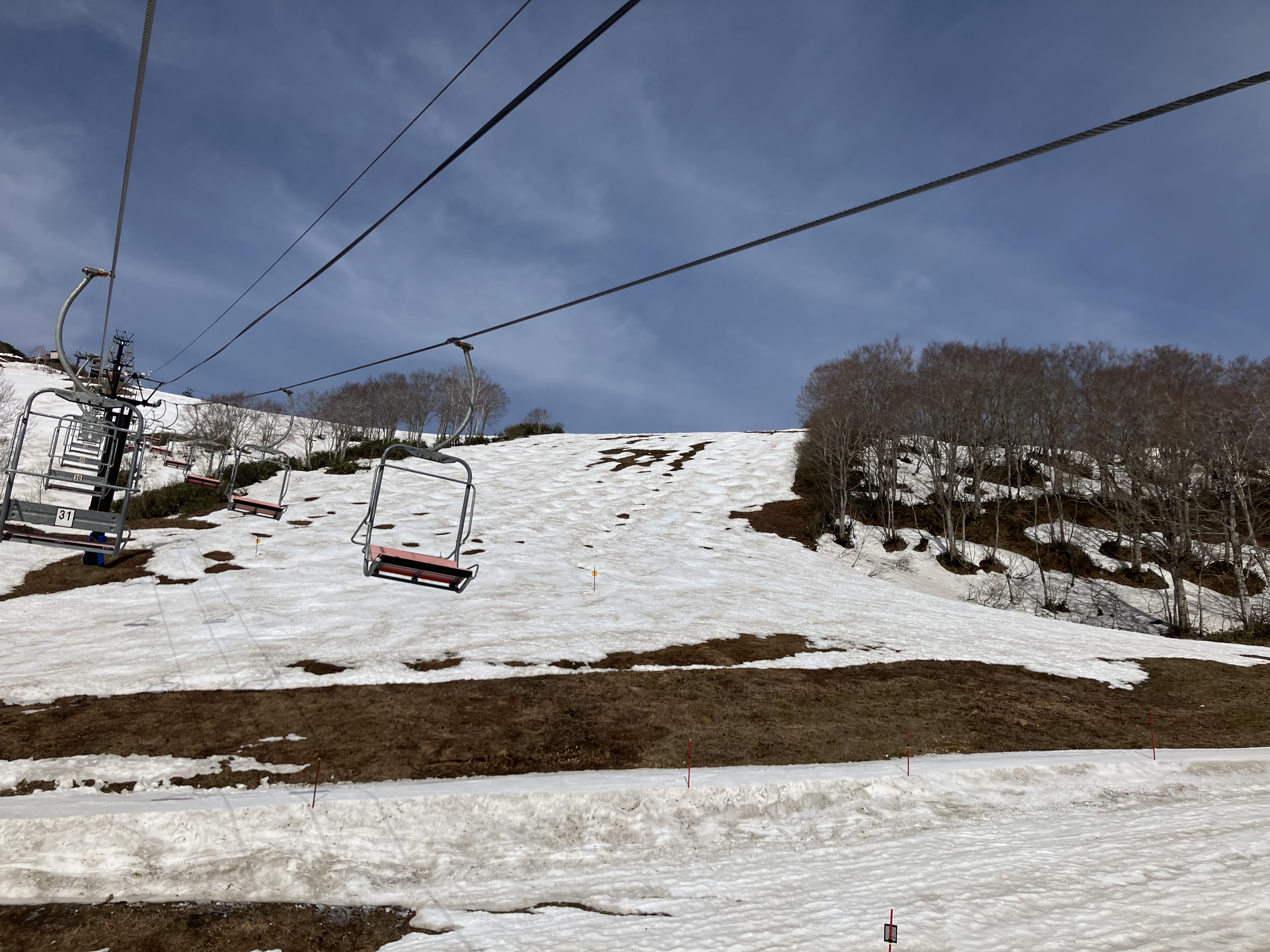 ​4月の陽光という名の「炎の魔法」がゲレンデを照らし、雪解けが加速する今日この頃。