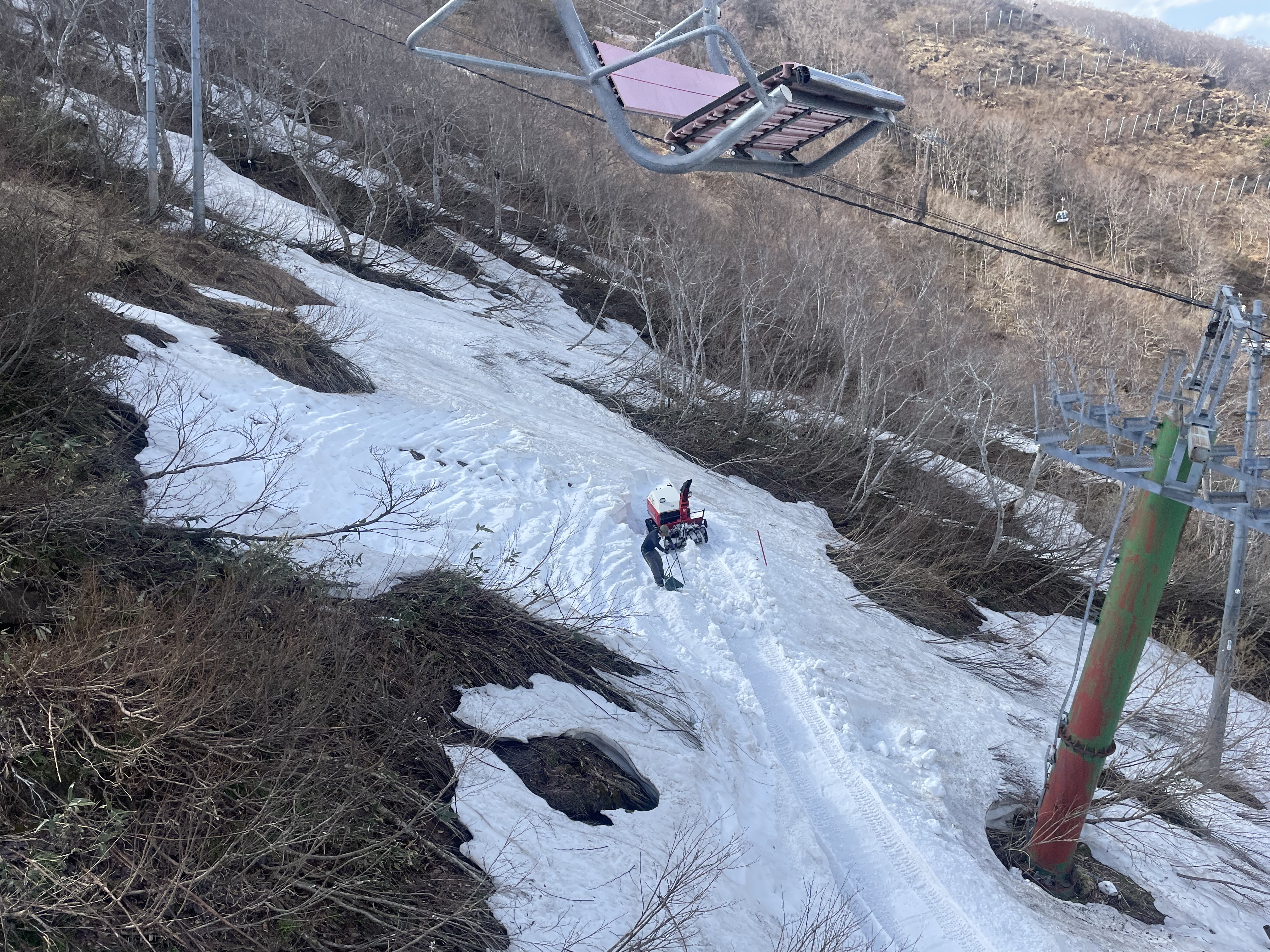 麓から見るととてもスキー場が営業してるとは思えない雰囲気がありますが、